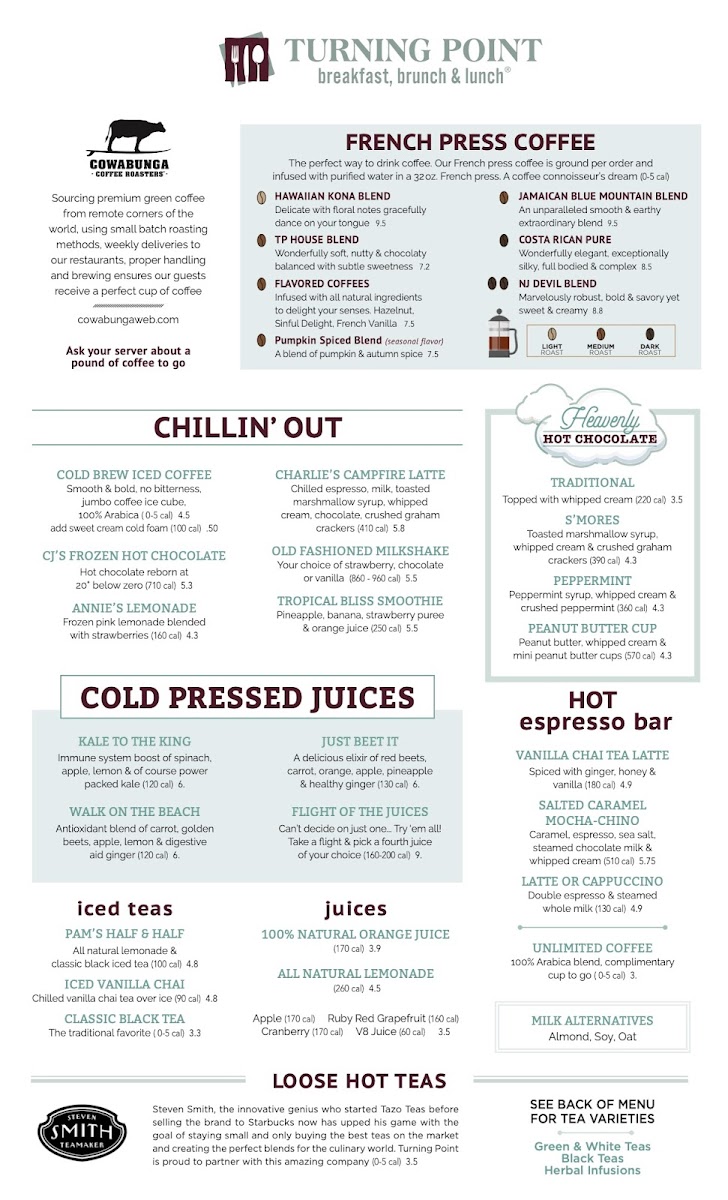 Welcome to Turning Point of Little Silver, an inviting brunch haven located at 496 Prospect Ave. This charming spot has quickly gained popularity for its delightful menu and exceptional service. Guests rave about dishes like the Wilbur Toast and Mushroom Toast, which are praised not only for their scrumptious flavors but also stunning presentation. The Pumpkin Latte, with a sprinkle of cinnamon spice on the rim, adds a unique finishing touch that has become a favorite among visitors.